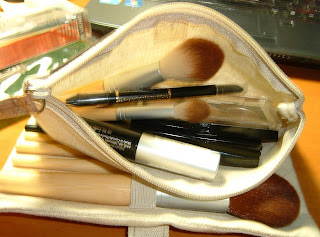 - Brush roll: had elastics to hold brushes in place, separate compartment w/ zipper for makeup, and can be rolled and secured ready for tavelling.