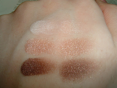 ( I also tried the sapphire ice maybelline creme shadow trio... Didn't like it and won't use it anyway because the blue and the greys are more shimmery than pigmented and they go on very sheer.)
